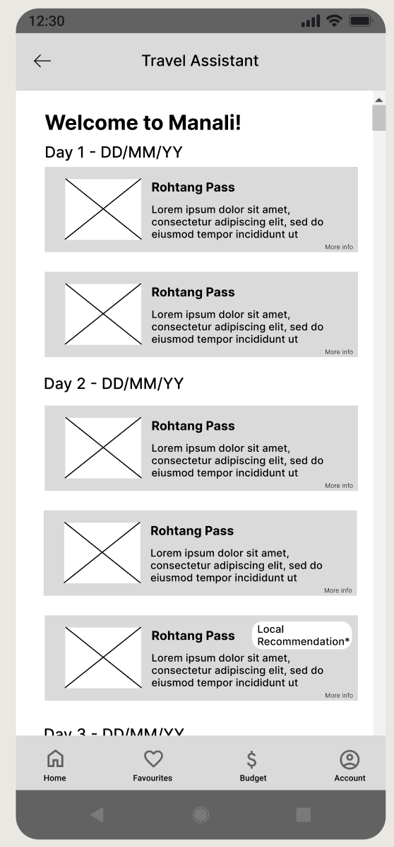 Introduced template itineraries for users who prefer preplanned vacations, while also offering drag-and-drop customization to support adaptive and spontaneous travelers.